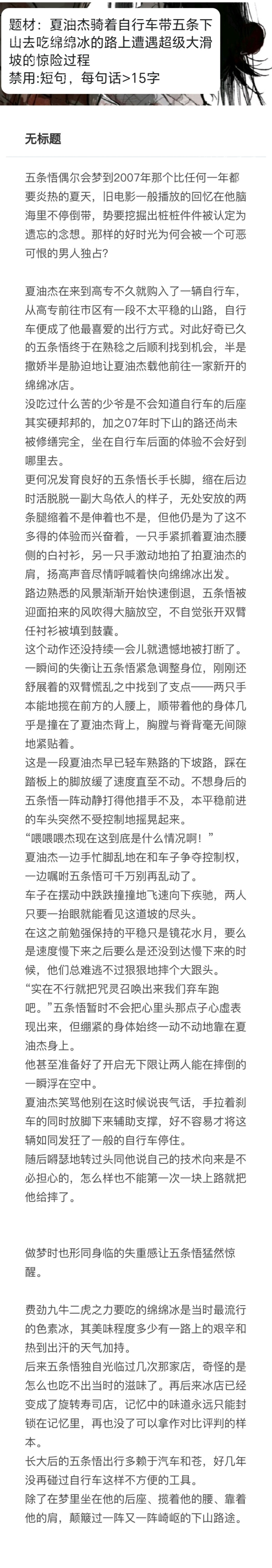 本次邀请了@巴特孚莱 @独尊哥向南的那个平安夜 @黄油芝士ButterCheese @迷人先生ya @L_Hance 总共五位老师参与本次匿名创作的游戏,统一主题诚邀大家来阅读并且猜测各个片段对应的作者~