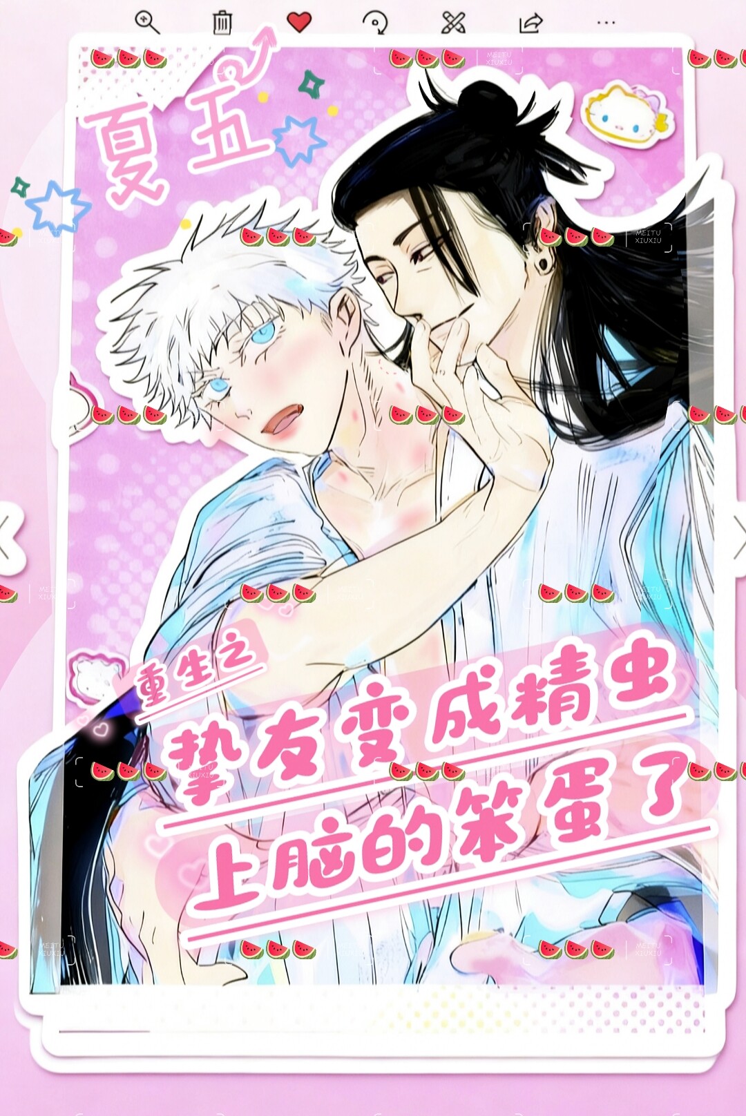 夏油杰低下头,将自己的额轻轻抵着悟的额,鼻尖亲昵地贴着对方挺翘的鼻尖,呼吸交织,分享着彼此的气息。