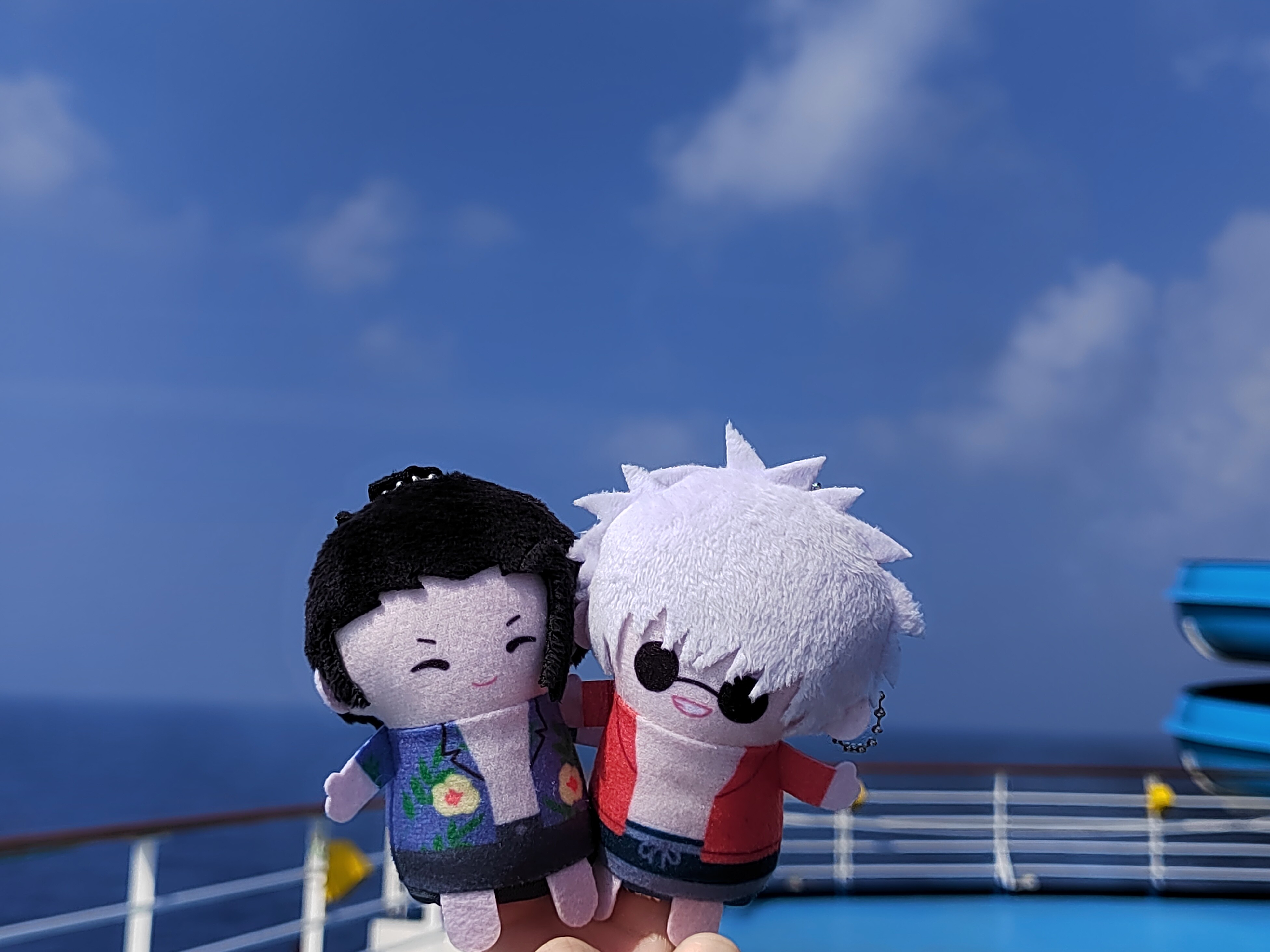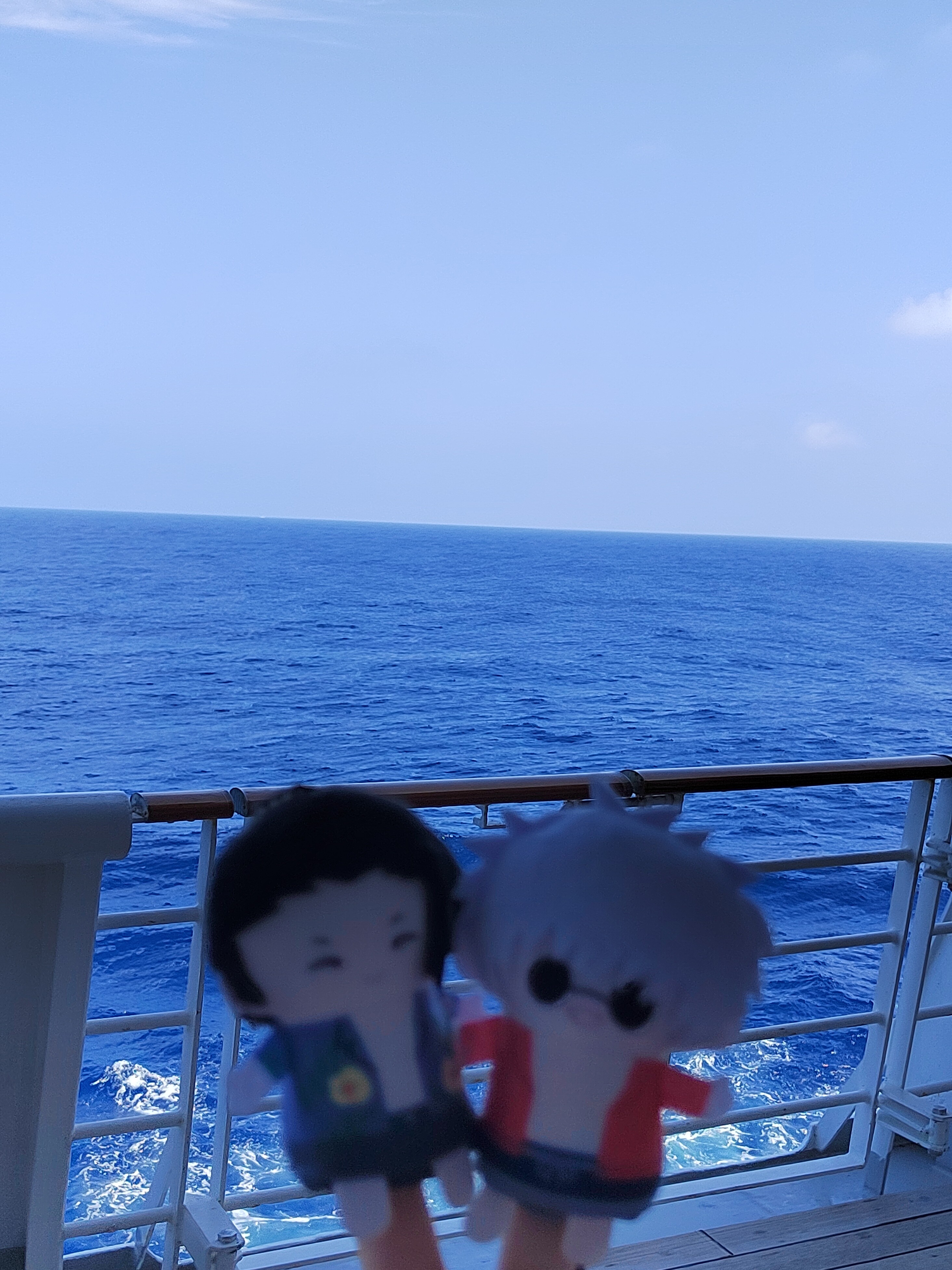 一定一定要选VIP,不管是下冲绳,回船,下船结束旅程,都是最舒适的。完全不担心是否需要排很久的队伍,且有专人服侍,特别适合我这种i人。带着大包小包谷子就上去美美拍照了。不过注意一点是船员大部分外籍占70%,高管也是。负责我那层是菲律宾人,emmm其实听不太懂,我讲的英文他们也不太听的懂,菲律宾英文说得有口音,无网翻译器一定要备好。餐厅也是几乎是菲律宾和印尼人,不过比客房的更加友善。还好前台是中国人,不然我翻译器要轮冒烟了。私心让硝子也写进来!当医生在船上,可是非常非常昂贵的收费。看一次病七百hkb起步,硝子就狠狠赚钱吧!
